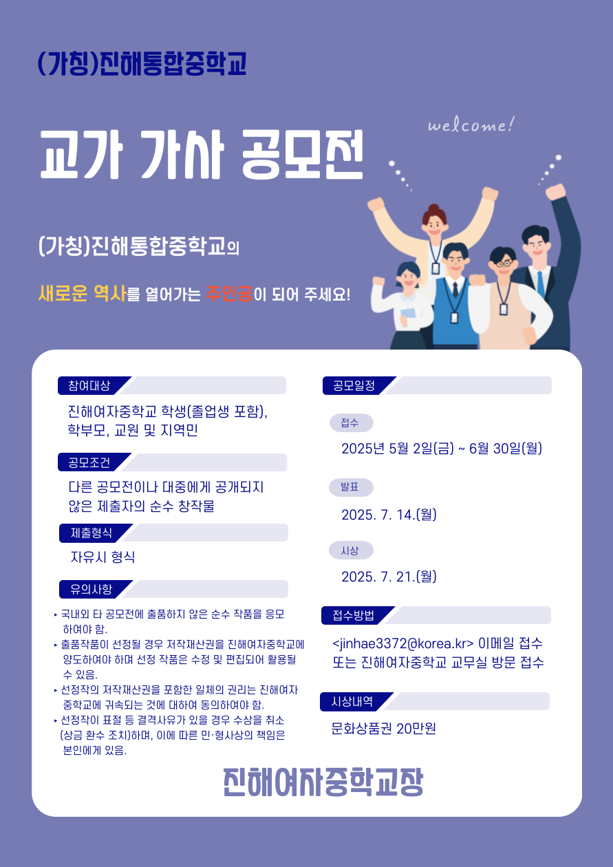(가칭) 진해통합중학교 교가 가사 공모전 안내
