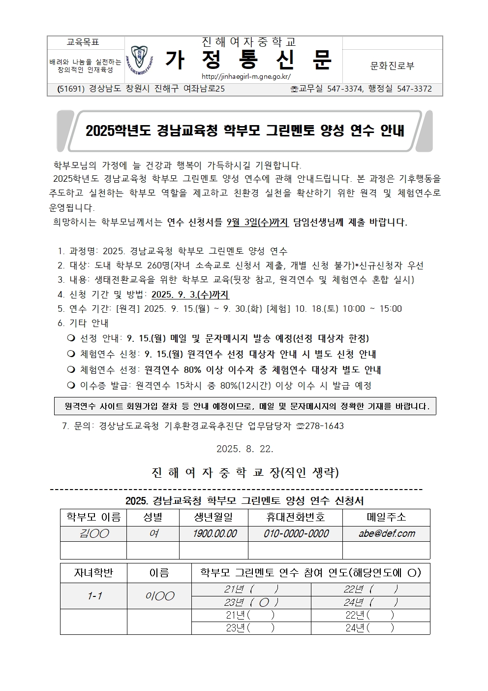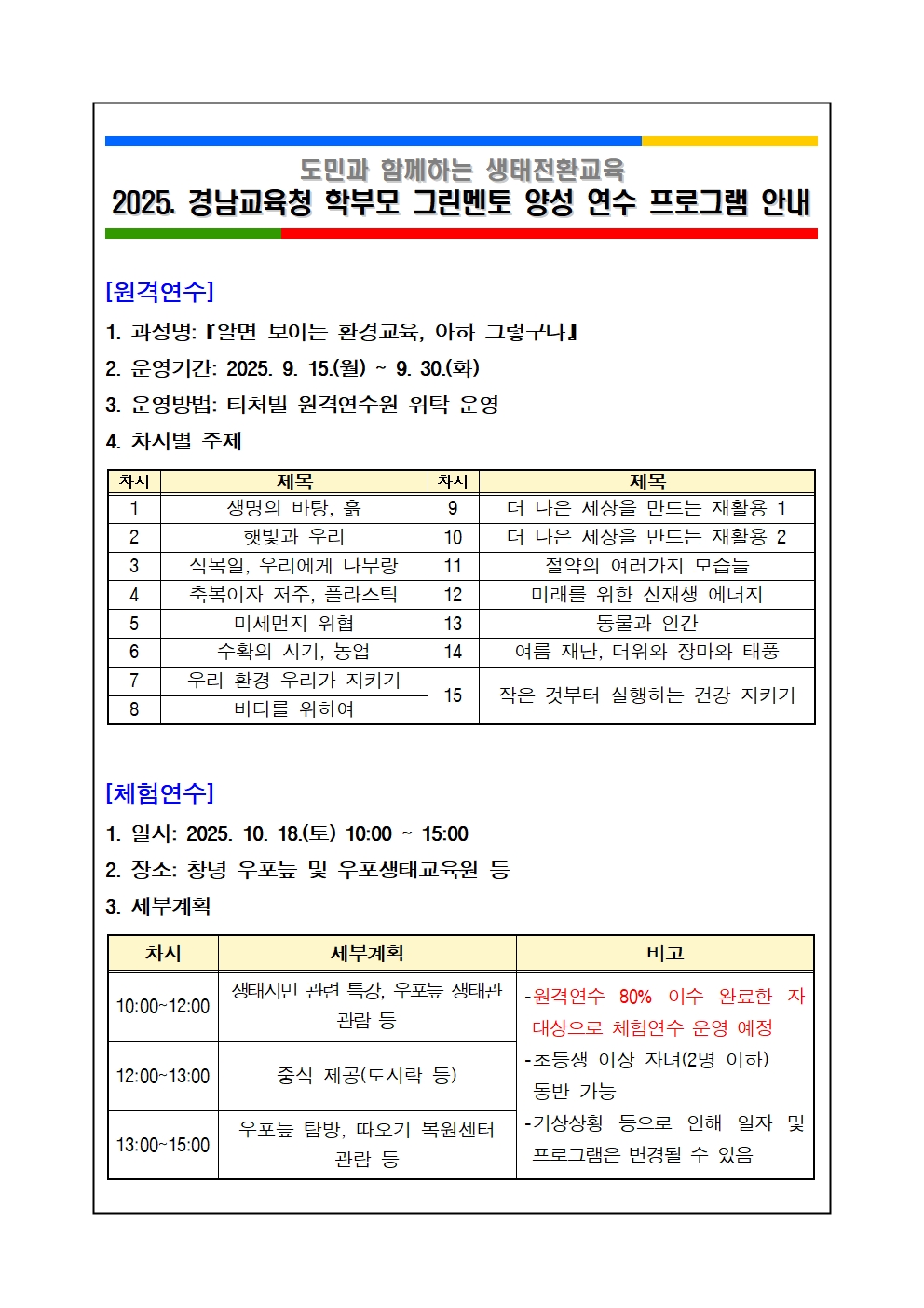 2025학년도 경남교육청 학부모 그린멘토 양성 연수 안내